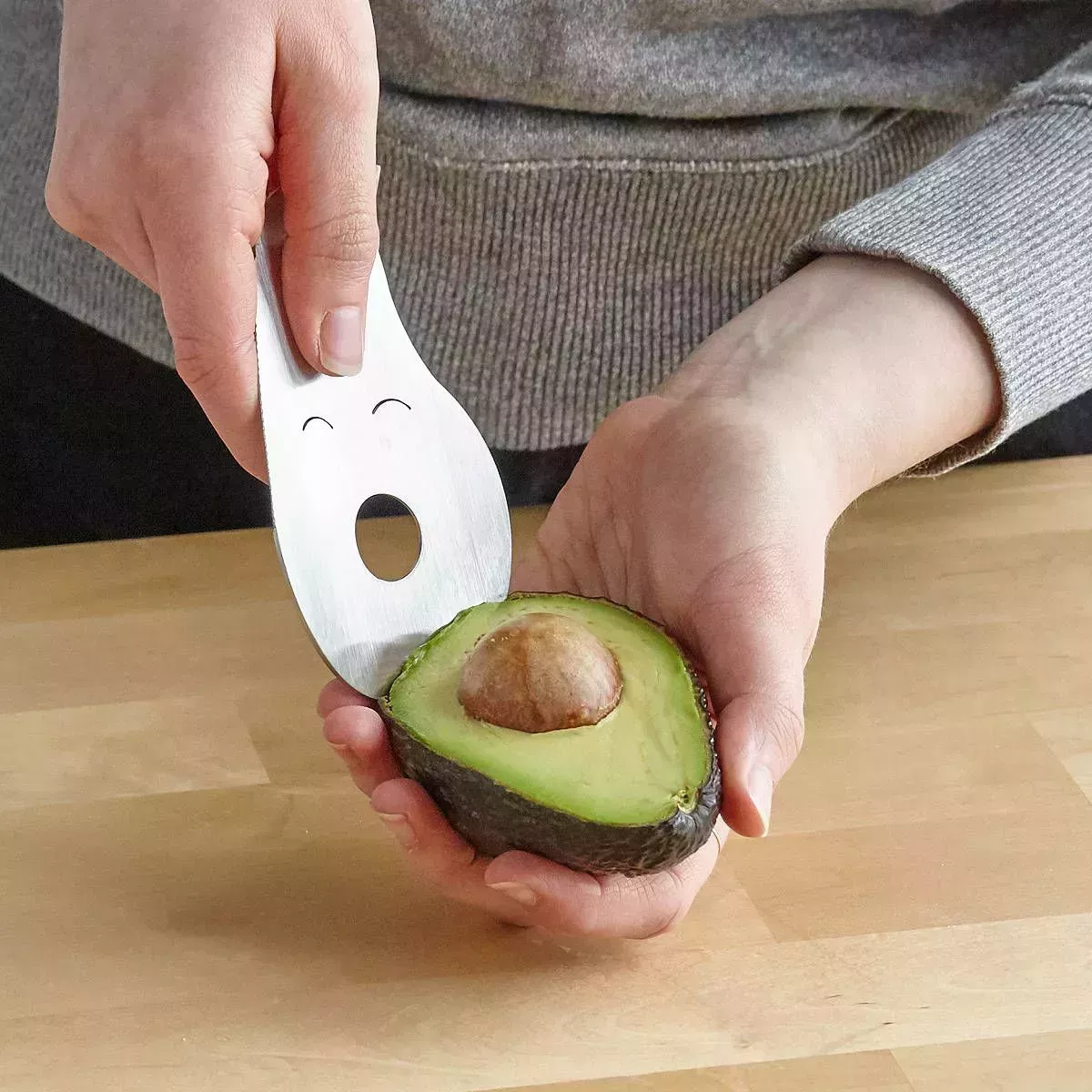 Los aguacates, aunque deliciosos, pueden ser difíciles de abrir. Esta "multiherramienta para aguacates" hace todo el trabajo duro por usted. Te ayuda a agarrar, abrir y sacar el aguacate y ponerlo en el plato con facilidad. Sin necesidad de cuchillo y cuchara.