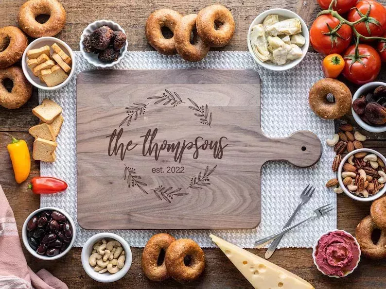 Para los obsesionados con el vino y el queso, prueba a regalar esta tabla de cortar que puedes personalizar con su nombre. De este modo, será útil y servirá de decoración para su hogar.