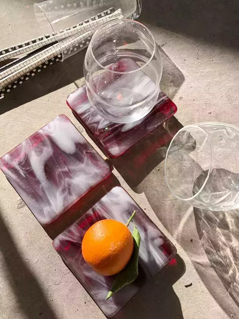 Estos posavasos de cristal jaspeado son muy bonitos. Quedarán muy bien en la mesa de café de tu foodie y protegerán todas tus bebidas divertidas para que no queden manchas de anillos.
