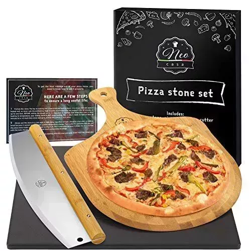 Este set para hacer pizzas hará que las noches de los viernes sean de lo más divertidas. Incluye una piedra de pizza para cocinar, una tabla de madera para servir, así como un cortador de pizza largo para obtener las porciones más crujientes.
