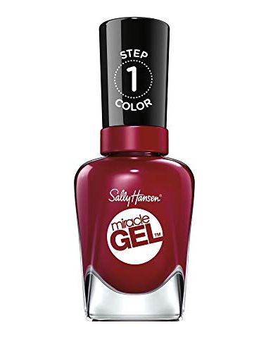 Para un rojo que sigue dando, pruebe este Gel Milagro de Sally Hansen, una hermosa tonalidad roja oscura con un cálido trasfondo de color rojo.