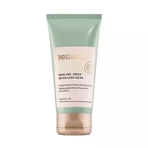 La crema de manos con escualeno de Biossance tiene una textura casi acuosa que se funde rápidamente con la piel. La consistencia ligera de la vitamina E, los ácidos grasos omega y los antioxidantes trabajan juntos para reconfortar las manos que no están demasiado secas o agrietadas.