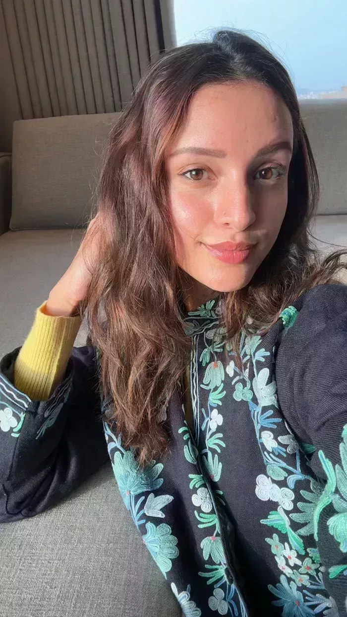 Aunque las elecciones de moda de Triptii Dimri sirven de inspiración, sus trucos de belleza y cuidado de la piel también merecen una mención especial. La diva, que un día se maquilla a conciencia y otro se deshace de los pinceles de belleza, aplica su experiencia en ambos casos. Recientemente, en su cuenta de Instagram, la actriz nos ofreció una muestra de su look minimalista a través de un bonito selfie. No podía faltar en su rostro el rubor del sol. Pero Triptii decidió realzar el resplandor rosado espolvoreando su piel con un poco de colorete alrededor de las mejillas y un poco en la nariz. Para los labios, la actriz optó por un toque afrutado, con un tono rosa melocotón brillante. El juego de ojos de la diva fue minimalista. Sus ojos se iluminaron sutilmente con unas pestañas finas y cargadas de rímel, sin trazos oscuros de kohl o eyeliner. Las cejas arqueadas enmarcaban su rostro con belleza. Triptii selló su look de rostro fresco dejando al aire su melena ondulada.