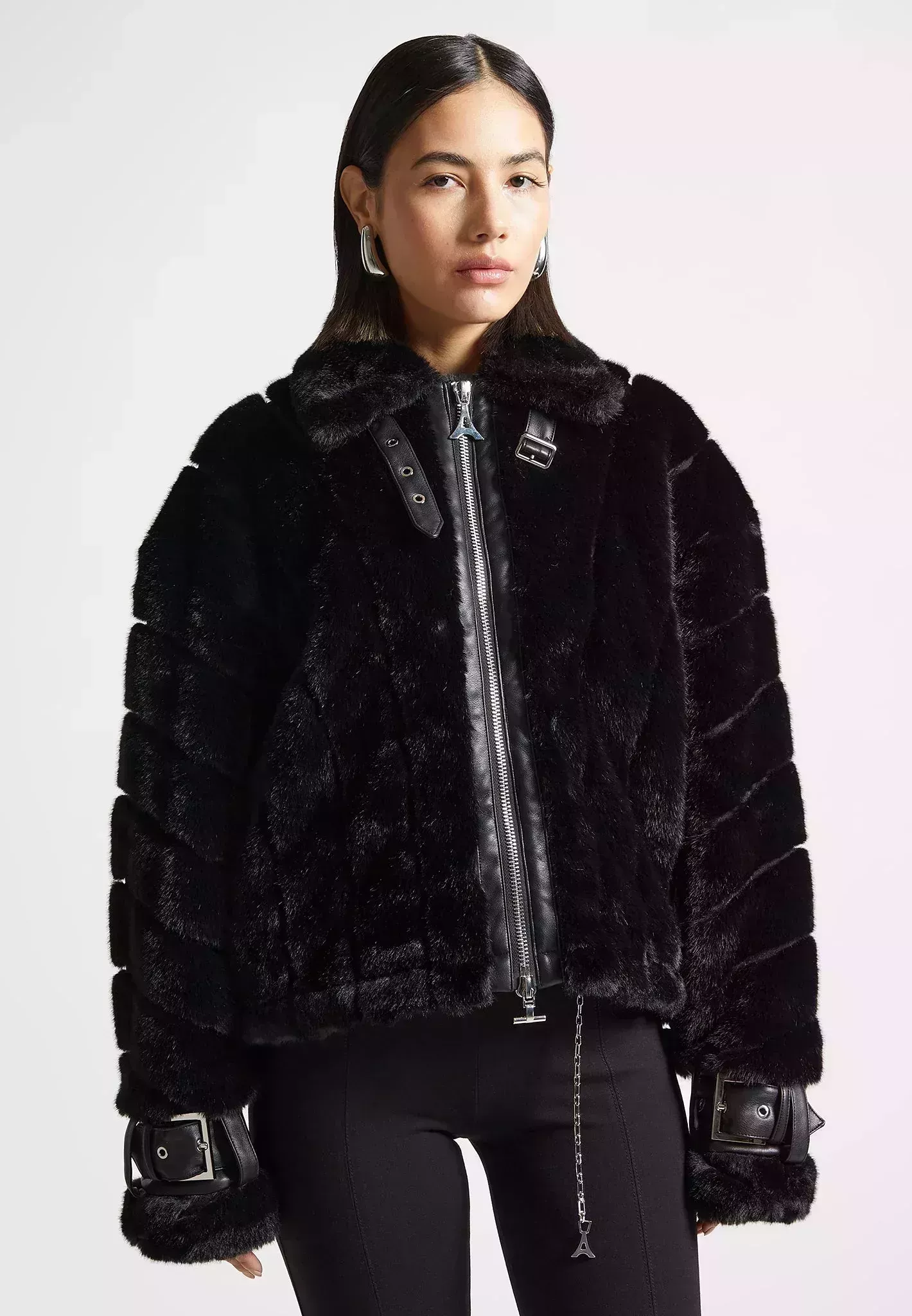 Esta chaqueta de piel sintética es una versión afelpada de una chaqueta motera que sin duda elevará cualquier atuendo al siguiente nivel.