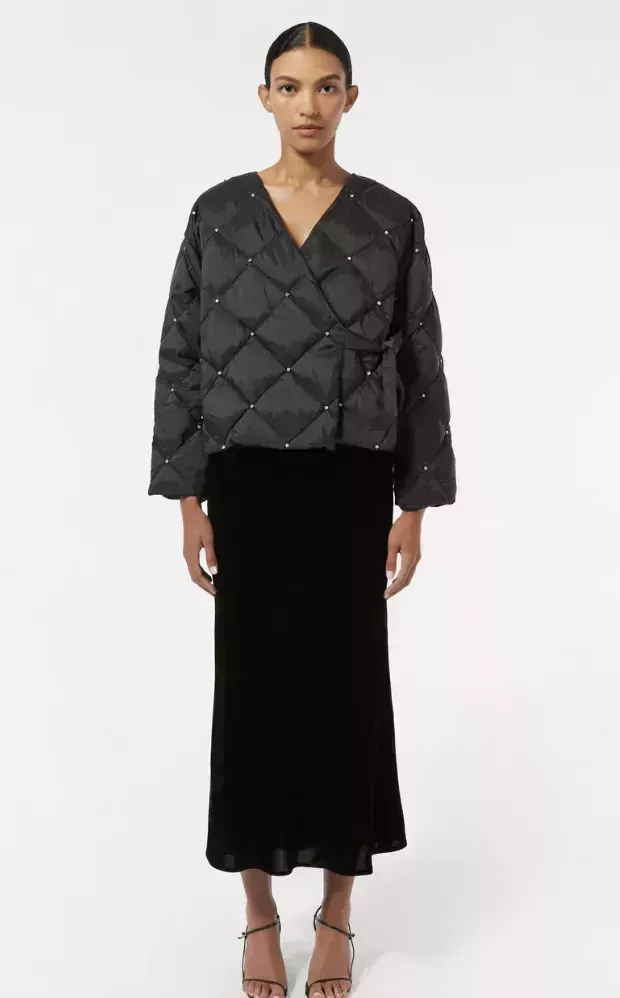 Elegir el abrigo o la chaqueta adecuados para una noche elegante puede ser complicado. Esta chaqueta acolchada está salpicada de cristales para que no pases frío sin ir mal vestida.