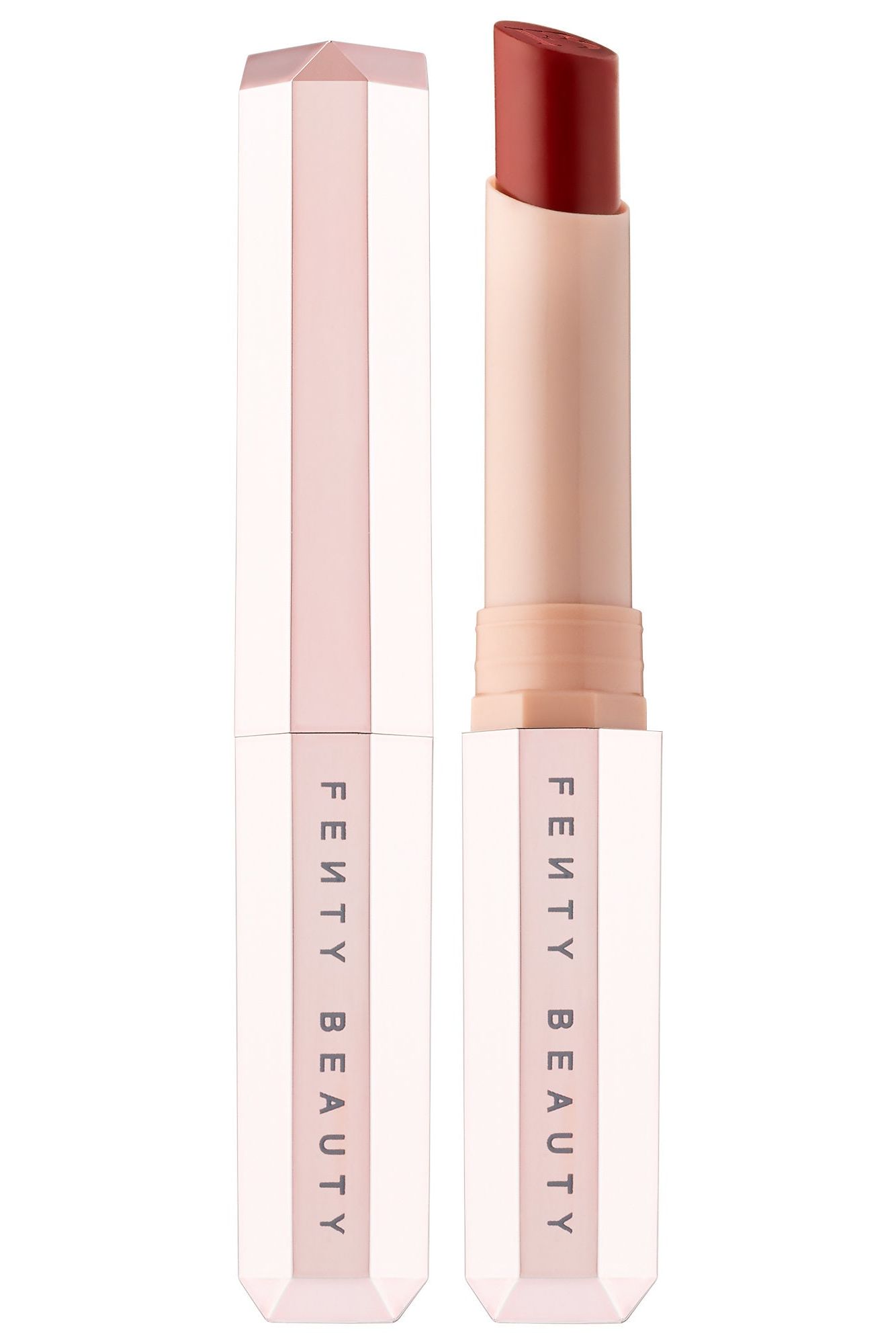 Un rendimiento superior en la prueba de lápices labiales de larga duración del Laboratorio de Belleza GH, esta fórmula de Fenty Beauty viene en 24 tonos para una diversa gama de tonos de piel, incluyendo esta mezcla de marrón y rojo oxidado que hace un hermoso tono neutro en la piel oscura. El rico pigmento de este lápiz labial "se mantuvo encendido incluso durante una limpieza en el dentista!", se maravilló un probador. En las evaluaciones de laboratorio, el color seguía siendo fuerte después de cinco horas de uso.