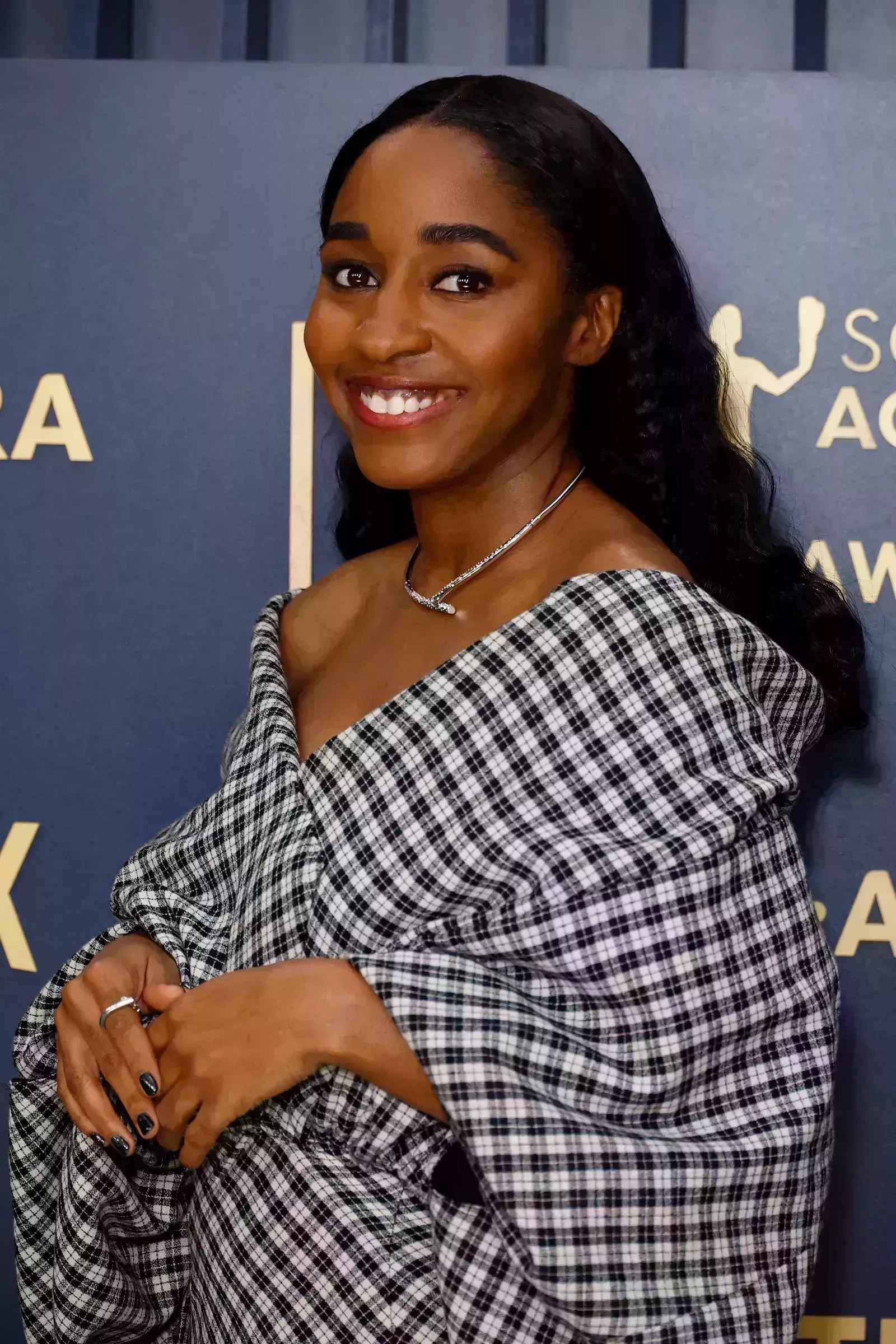 Ayo Edebiri cambió su peinado para los SAG Awards, cambiando su corte recto por uno más largo con una bonita trenza. Combinó su corta y brillante manicura negra con su vestido estampado en blanco y negro.
