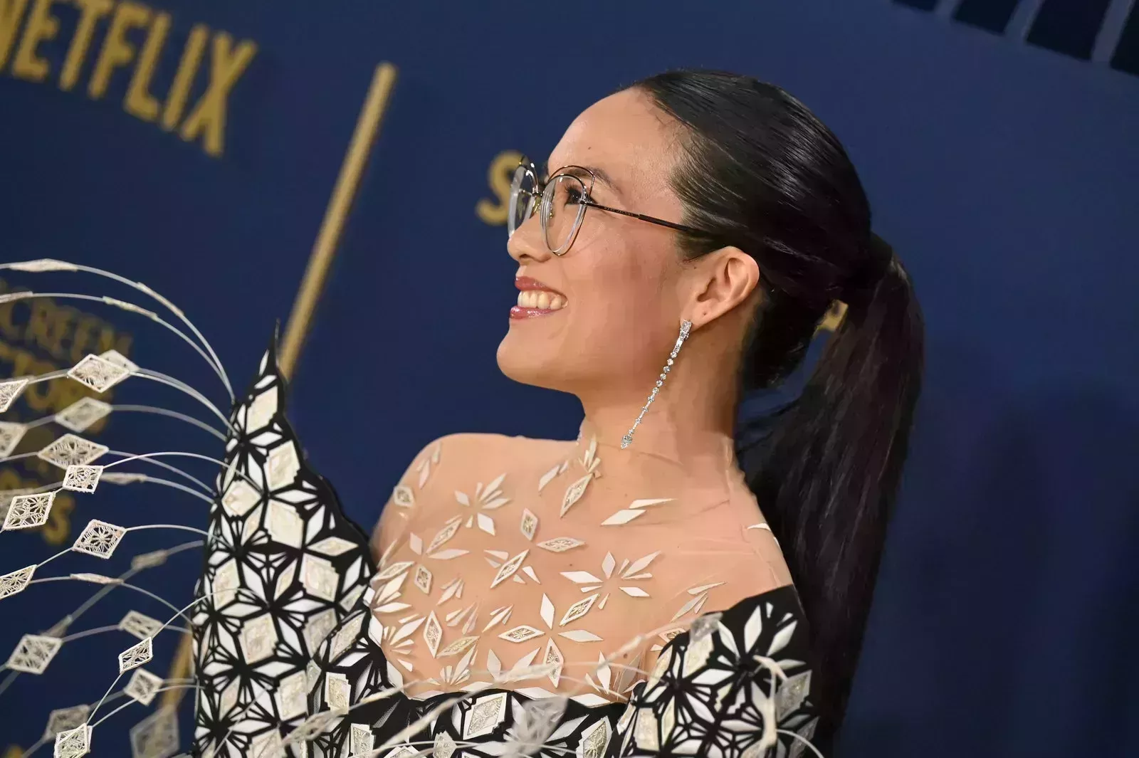 La coleta lisa y brillante de Ali Wong fue el complemento ideal para su vestido de Iris Van Herpen cortado con láser 3D. Tras secarle el pelo, el estilista Clayton Hawkins le colocó unas extensiones de seda de 26" de Bellami, le hizo una coleta y le roció con la laca Style Lab Flex Hairspray de Living Proof.