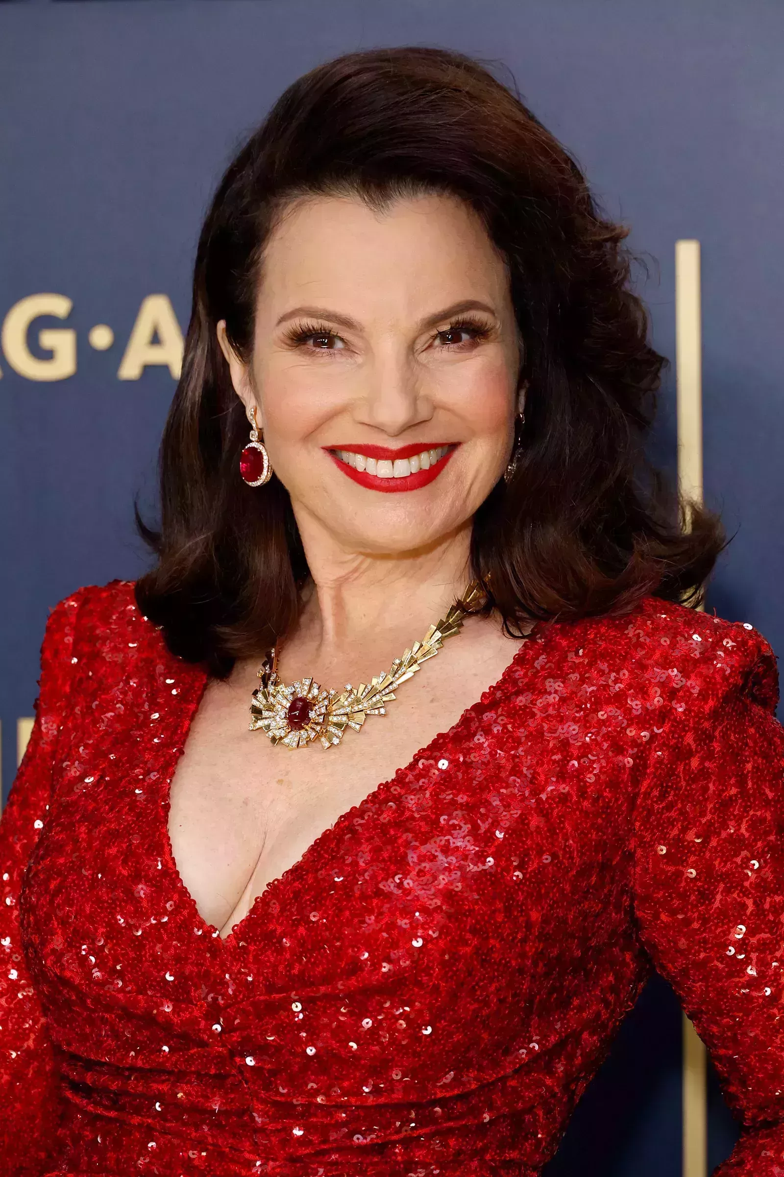 ¡La dama de rojo! La presidenta de la SAG-AFTRA, Fran Drescher, hizo toda una declaración de intenciones con su voluminoso peinado y sus labios cereza (y unos enormes pendientes de rubí). Fran Fine estaría orgullosa.
