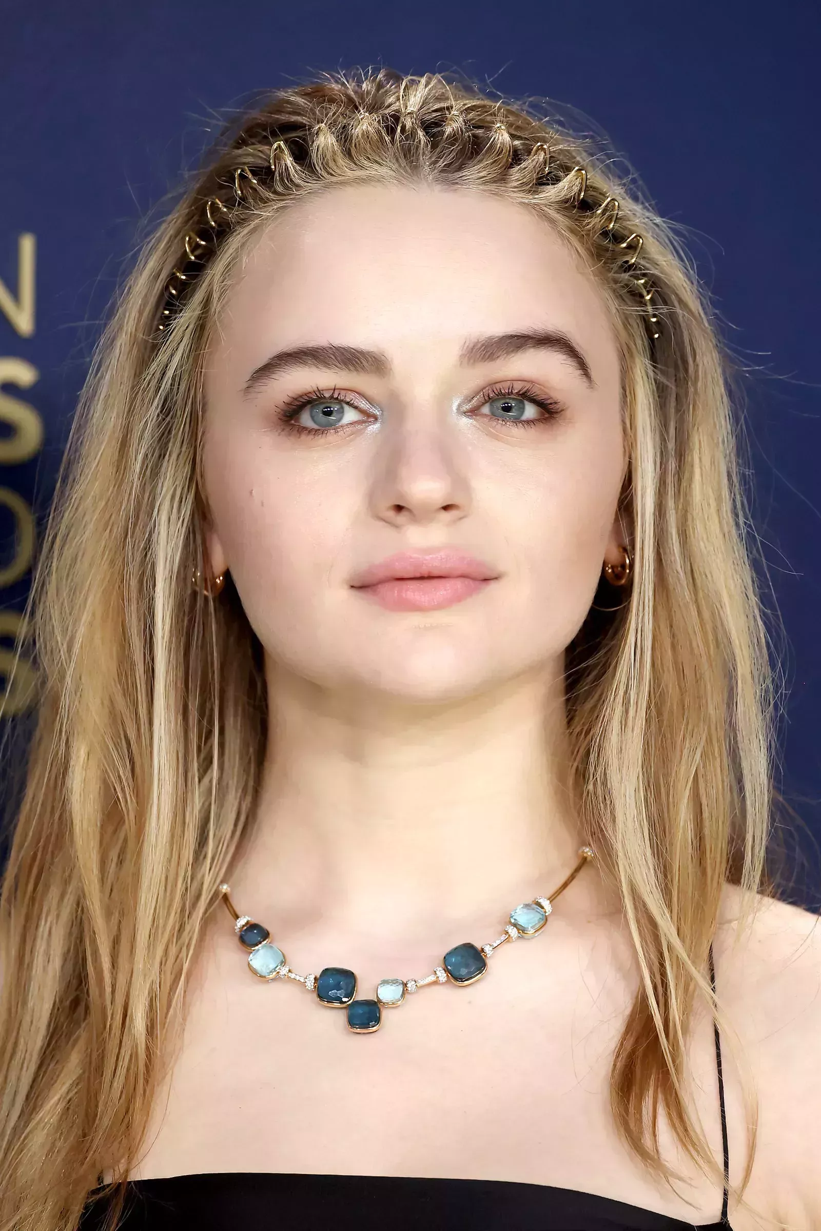 Joey King volvió a finales de los 90 con su pelo rubio liso, acentuado con lo que parece ser una diadema acordeón, o una ingeniosa recreación de dicho look. (En serio, estoy bastante segura de que yo llevaba este mismo accesorio en 1998). El toque de sombra plateada brillante en las comisuras interiores también estaba muy inspirado en el efecto 2000. Para un look similar, prueba las paletas de sombras de ojos Diorshow 5 Couleurs Couture de Dior Beauty en Soft Cashmere y Pied-de-Poule, que el maquillador Allan Avendano utilizó en King.