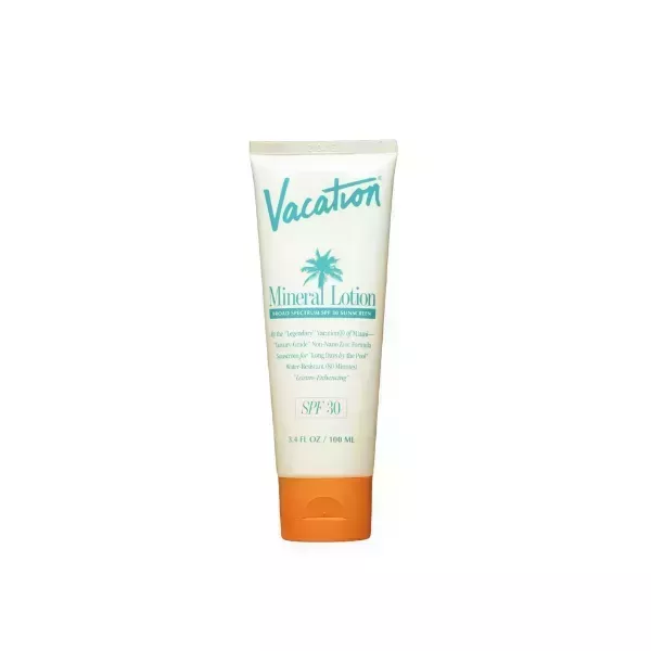 Por qué nos encanta: Somos grandes fans de los protectores solares minerales de Vacation porque son suaves con la piel y se secan notablemente claros. Y el envase de la marca es siempre *el beso del chef*.