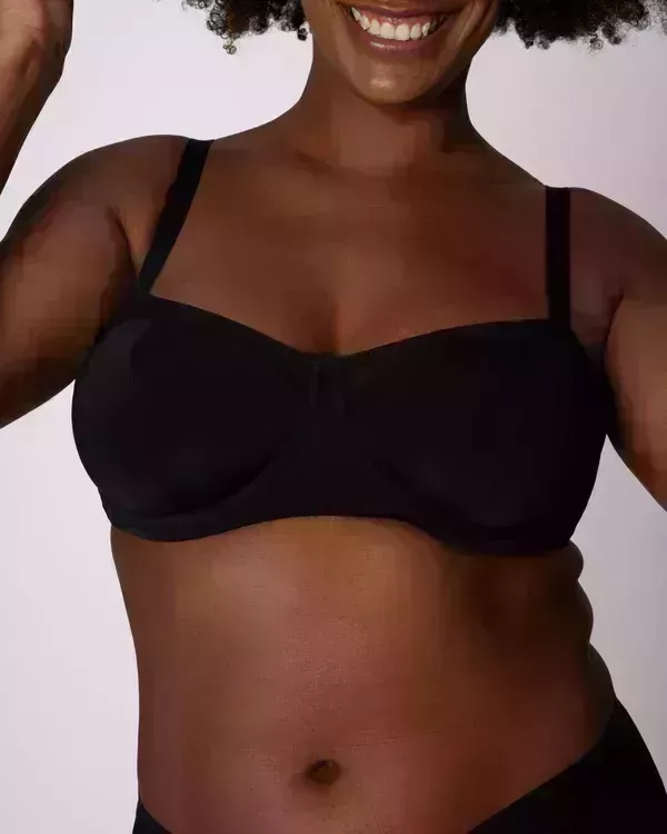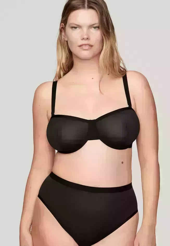 Con un escote cuadrado, las líneas limpias son la clave. Un sujetador balconette de material liso que se asiente más sobre los hombros realza el aspecto sofisticado y sin costuras del escote.