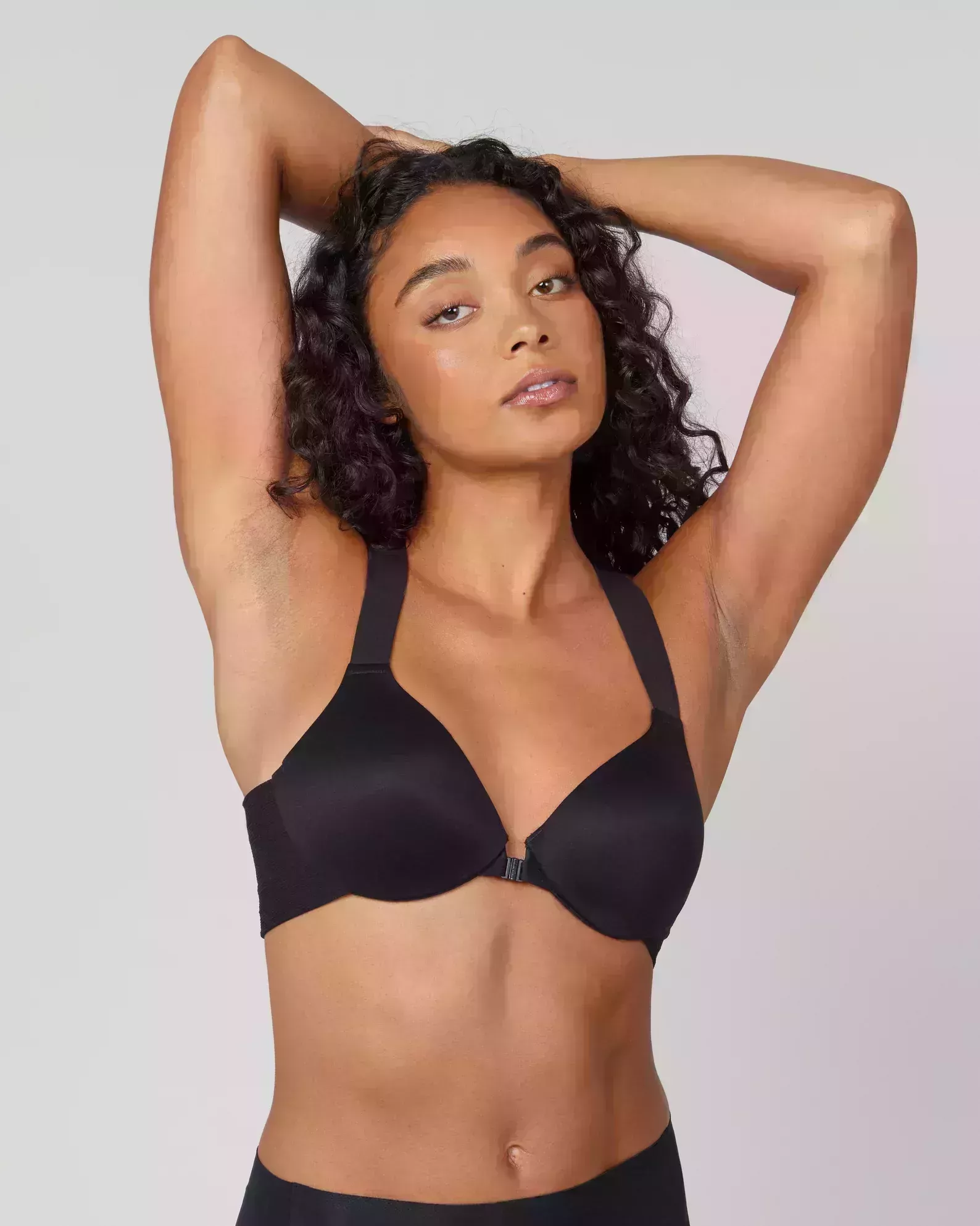 Los escotes con espalda al aire requieren sujetadores con espalda al aire, y punto. Los tirantes en forma de V de la espalda del sujetador se unen en los omóplatos y se alinean para proporcionar una sujeción que queda perfectamente oculta bajo tu vestido o top deportivo favorito.