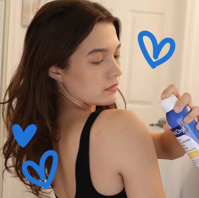 Todo esto para decir que en la parte superior de la lista de deseos de mi piel este año están los productos que son 1) ultraeficaces y 2) increíblemente fáciles de usar. Entra la combinación definitiva: los nuevos Parches de Cuidado Posterior para Manchas y el Spray Corporal Eliminador de Acné de PanOxyl.