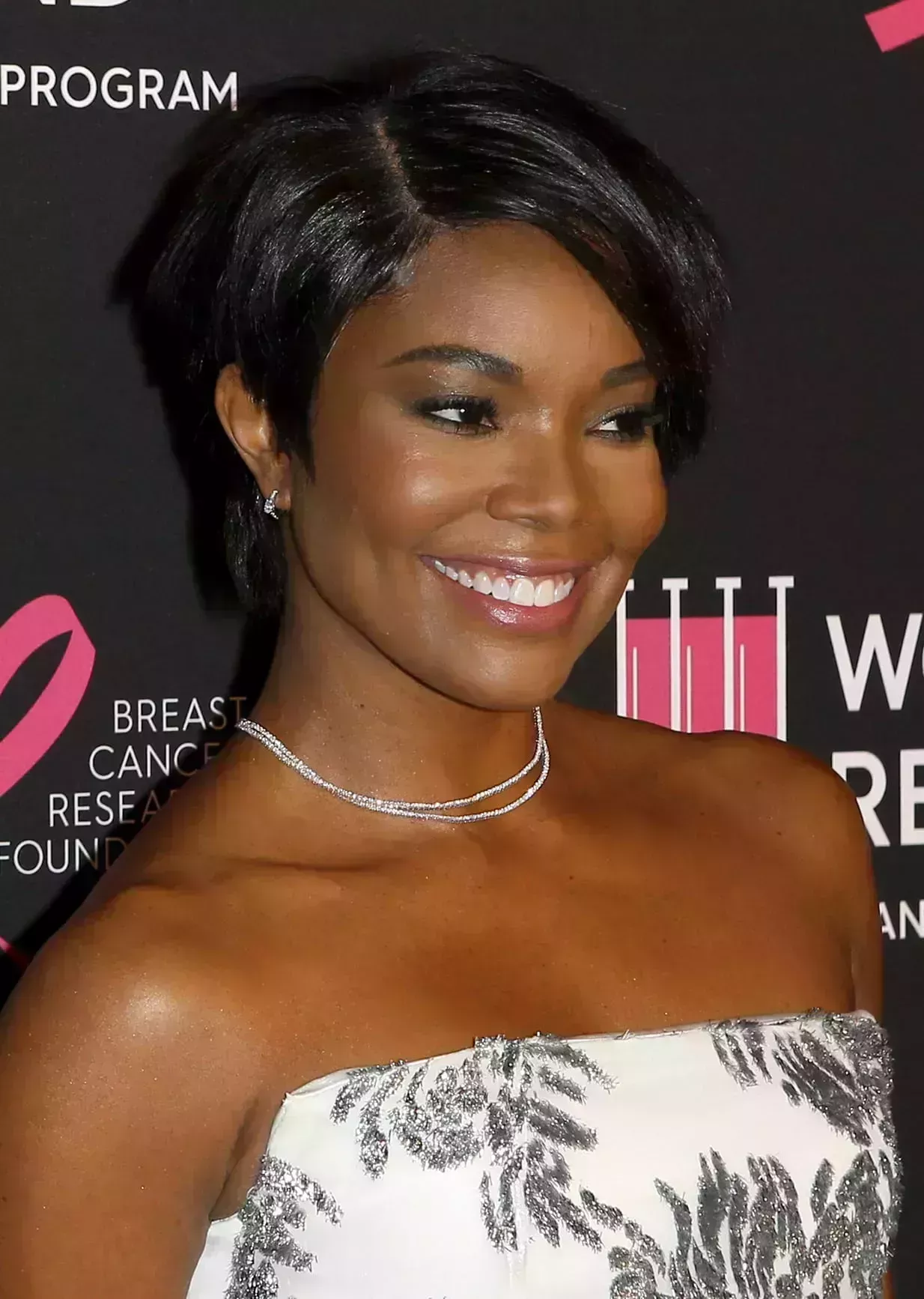 trata de peinados cortos, los pixies son un verdadero clásico. Aquí, Gabrielle Union lleva el suyo en un estilo de lado-partido nervioso que se ve oh-tan-cool.
