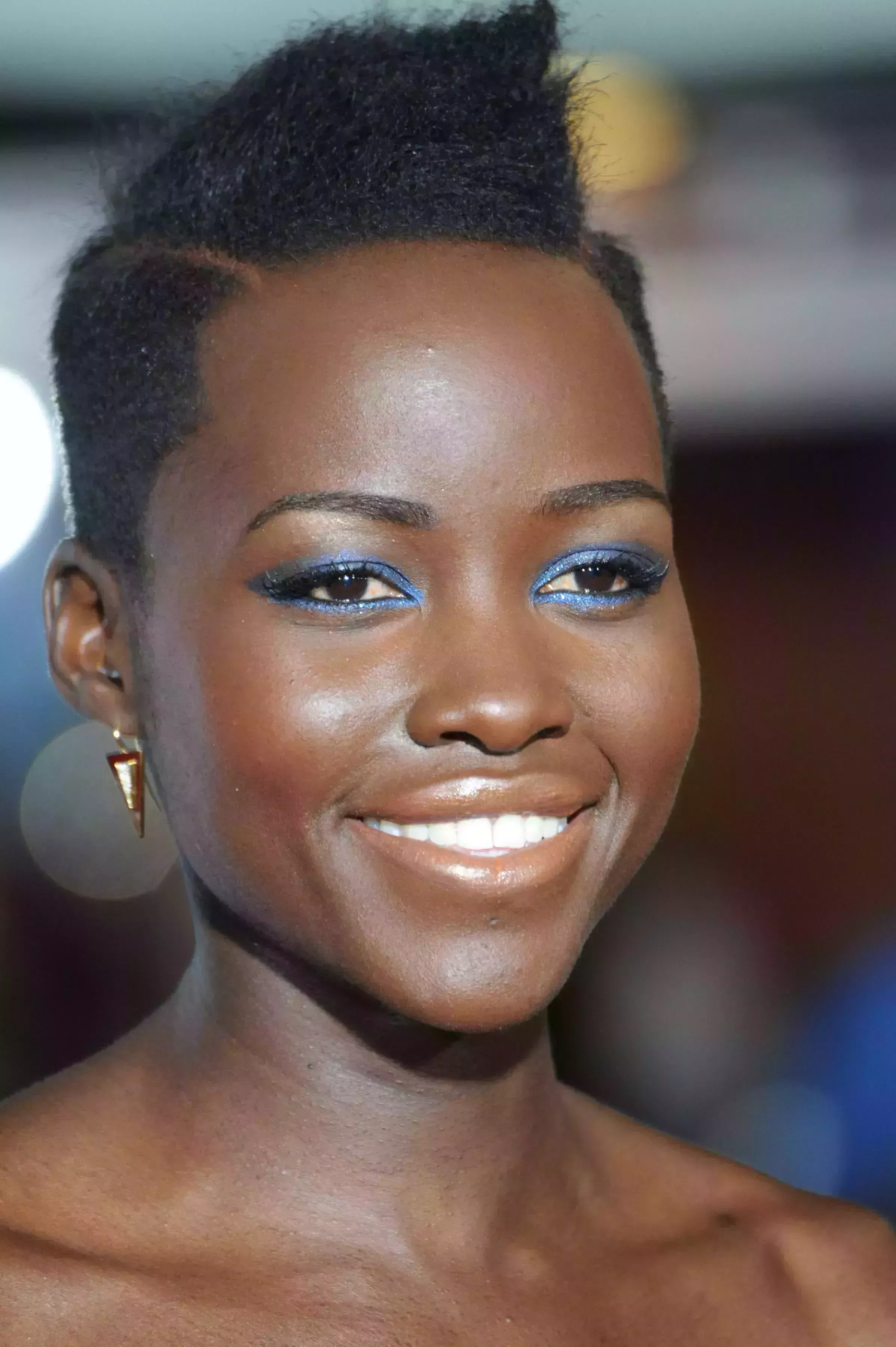 Nyong'o hace una fuerte defensa del cabello andrógino con este falso halcón esculpido. Recortado a los lados pero alto y moldeado con estilo en la parte superior, es un look totalmente vanguardista y destacado.