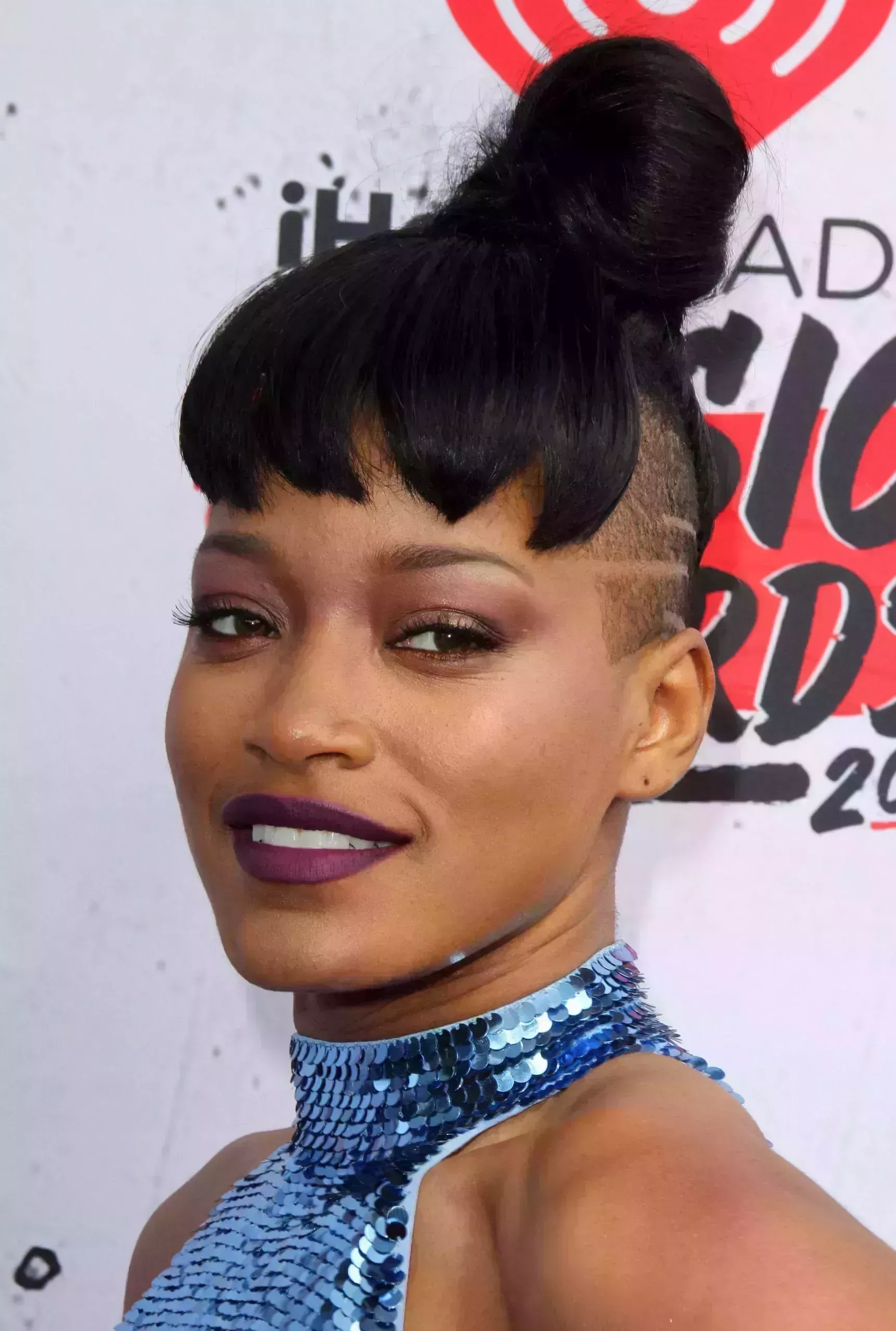PalmerKeke Palmer luce un look súper feroz con su exclusivo conjunto de flequillo y corte inferior rapado. El resto del cabello largo está arreglado en un moño prolijo. Un peinado único que hay que probar sin duda!