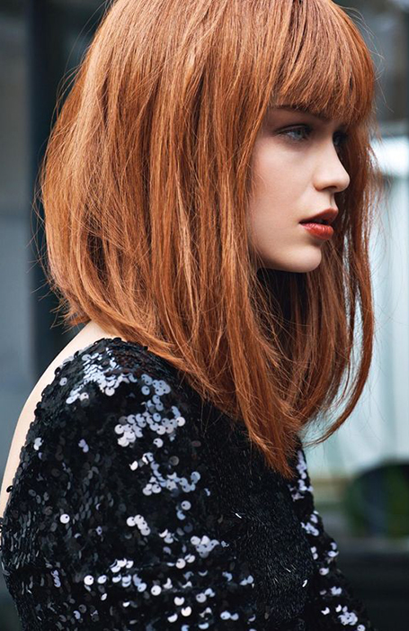 2. Cabello de longitud media con flequillo romo