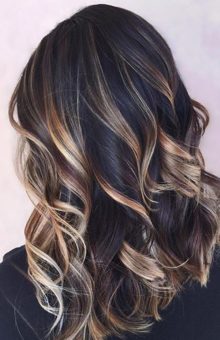 El Balayage ha sido un producto básico del color del cabello durante años debido a su capacidad de dar al cabello un levantamiento sutil y favorecedor. Si tienes el cabello negro, tu estilista puede añadir mechas de caramelo balayage para crear movimiento y dimensión en tu estilo. El Balayage luce particularmente hermoso en el cabello naturalmente ondulado.