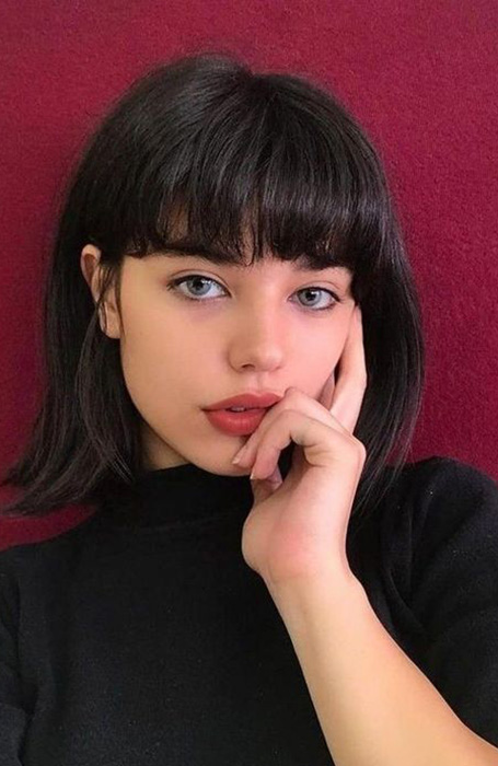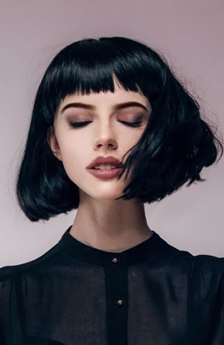 17. Pelo negro con un peinado de flequillo