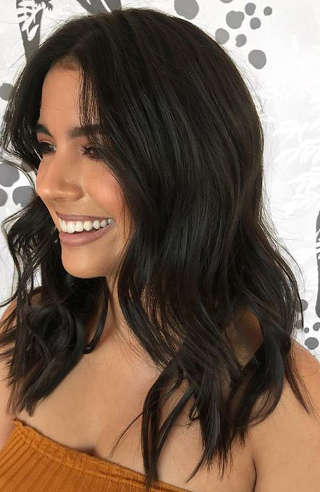 El cabello largo y negro es ideal para las mujeres que aman un look femenino, sexy y glamoroso. Además, es halagador tanto si se diseña en ondas explosivas como si es suave y recto. Sin embargo, si su cabello no es naturalmente súper oscuro, es una opción de alto mantenimiento. Antes de dar el salto y pasar al lado oscuro, asegúrate de que tu melena está en excelentes condiciones, obteniendo un recorte y un tratamiento en el salón. Una vez que te hayas teñido el cabello largo, evita lavarlo con demasiada frecuencia o peinarlo con herramientas de calor, ya que ambas cosas pueden afectar negativamente a tus mechas. Alternativamente, puede tomar el pelo negro de longitud media o hasta los hombros con extensiones de clip.