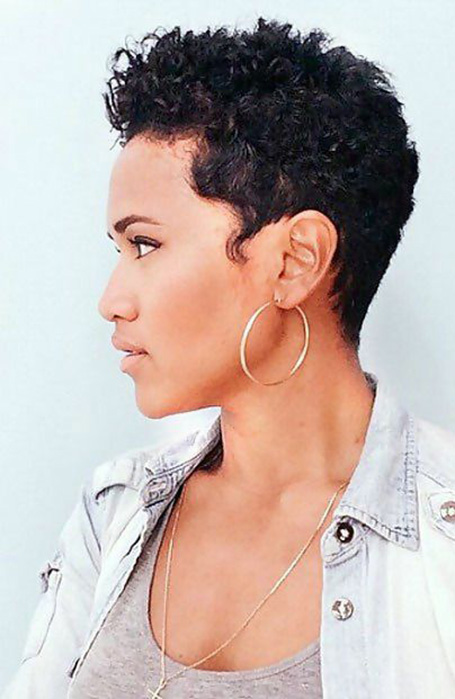 El cabello negro se ve muy bien cuando se combina con un corte de duendecillo, y si siempre has soñado con un corte ultracorto, ¿por qué no lo intentas? El resultado es vistoso y dramático, con un acabado chic. Además, un corte de duendecillo es de bajo mantenimiento y fácil de estilizar. Es ideal para las mujeres con cabello afro-texturado que quieren ir al natural por primera vez, ya que proporciona un aspecto bonito pero sofisticado después de obtener "la gran chuleta".