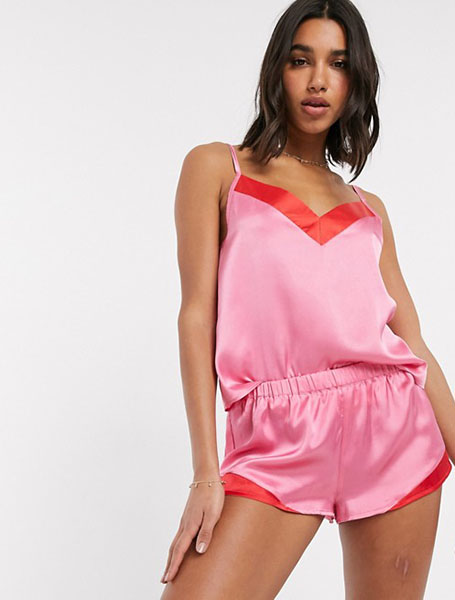 Haz de tu dormitorio tu pasarela con este moderno set de camisetas de satén. Con dos de los colores más calientes de la temporada y uno de los diseños más cómodos, te será difícil encontrar algo más tan lindo. La combinación de rosa y rojo es dulce como un caramelo, y el corto y la mezcla de camiseta te hará sentir fresca como una margarita. Añade una bata de color rojo cereza, y estarás lista para matar el día.