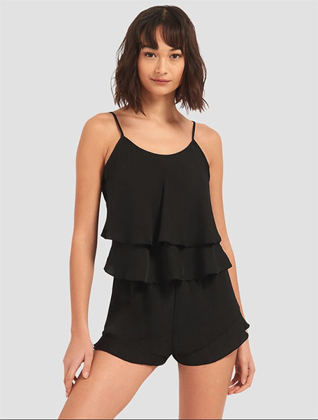Manténgalo corto y dulce en este impresionante set de camisetas. La camiseta flipante tiene un escote de cuchara, permitiendo que tu piel respire incluso durante las noches más cálidas. La parte inferior está cortada en la parte superior del muslo con un dobladillo de volantes para un acabado coqueto. Puedes llevarla con un kimono sedoso o una bata de baño, y el elegante color negro la convierte en una excelente opción para todos. Una vez que te pongas esto, ¡nunca querrás quitártelo!