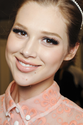 La belleza de esta colección de aires retro se centra en la mirada. Jacobs plasma a princesas urbanas, de pestañas infinitas e inocencia atractiva. Los rostros son limpios y cuidados, con bases naturales que acentúan ese eyeliner y las pestañas postizas, dotan a las modelos de una imagen magnética.