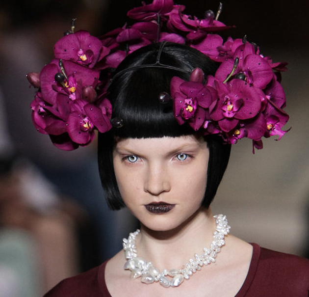 Con lentillas que daban miedo, diademas de flores en la cabeza y labios negros, las chicas eran como una mutación de Lana del Rey a las que las hubiera chupado la sangre Drácula. Nos encanta esta sensación entre terrorífica y maravillosa.