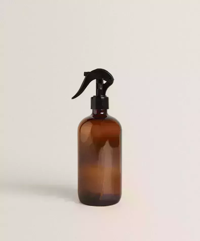 Esta elegante botella de vidrio ámbar es perfecta para productos de limpieza de bricolaje.