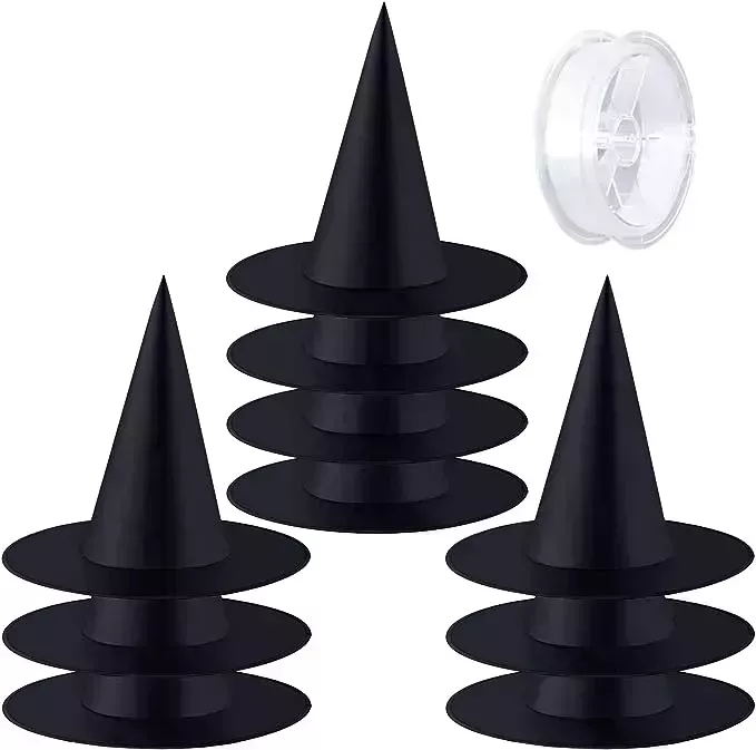 10 Piezas Sombrero de Bruja para Disfraces de Halloween con 100 Yardas de Cuerda para Colgar