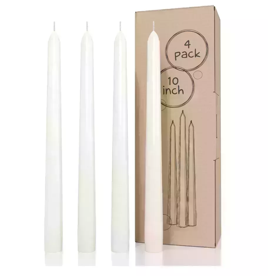 Velas sin humo y sin aroma Ivory Taper Dripless, paquete de 4