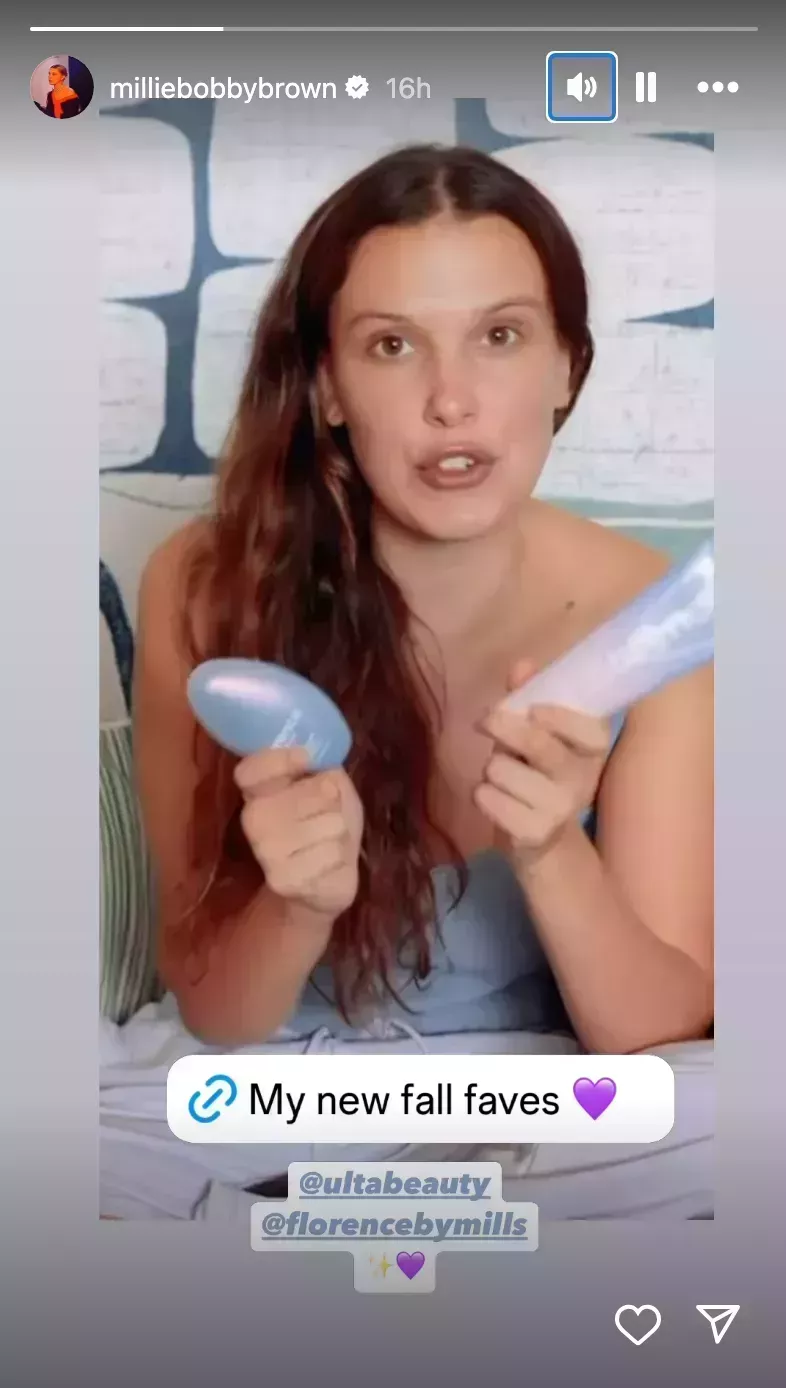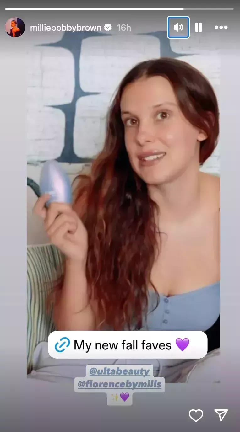 La estrella de Stranger Things dio a los fans un vistazo a lo que parece ser un nuevo color de pelo a través de Instagram Stories, donde mostró algunos de sus productos favoritos de su línea Florence by Mills. Aunque podría ser sólo un truco de la luz, definitivamente parece que el cabello de Brown ahora tiene un tinte rojo-castaño frente a su habitual morena oscura; hay un tono más cálido, rojizo a su color que es más evidente hacia los extremos de su cabello.