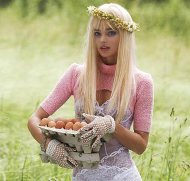 Nunca creímos ver convertida a Miranda Kerr en Cicciolina, uno de esos personajes que todo el mundo conoce, parodiada hasta la saciedad y con una carrera de lo más dispar. Sebastian Faena sabía que esto de poner a la segunda modelo más rica del mundo (Forbes dixit) traería cola, así que por obra y gracia de los pelucones rubios-casi-blancos convirtió a la modelo lady por antonomasia en la pecaminosa Cicciolina.
