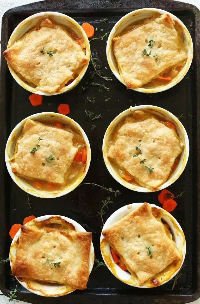 No echarás de menos el pollo (o la mantequilla) en estas tartas veganas. Además, los frijoles de este plato son buenos para tu salud intestinal. "La fibra proporciona prebióticos que hacen crecer bacterias más saludables en tu intestino (o microbioma)", dice Wolff.