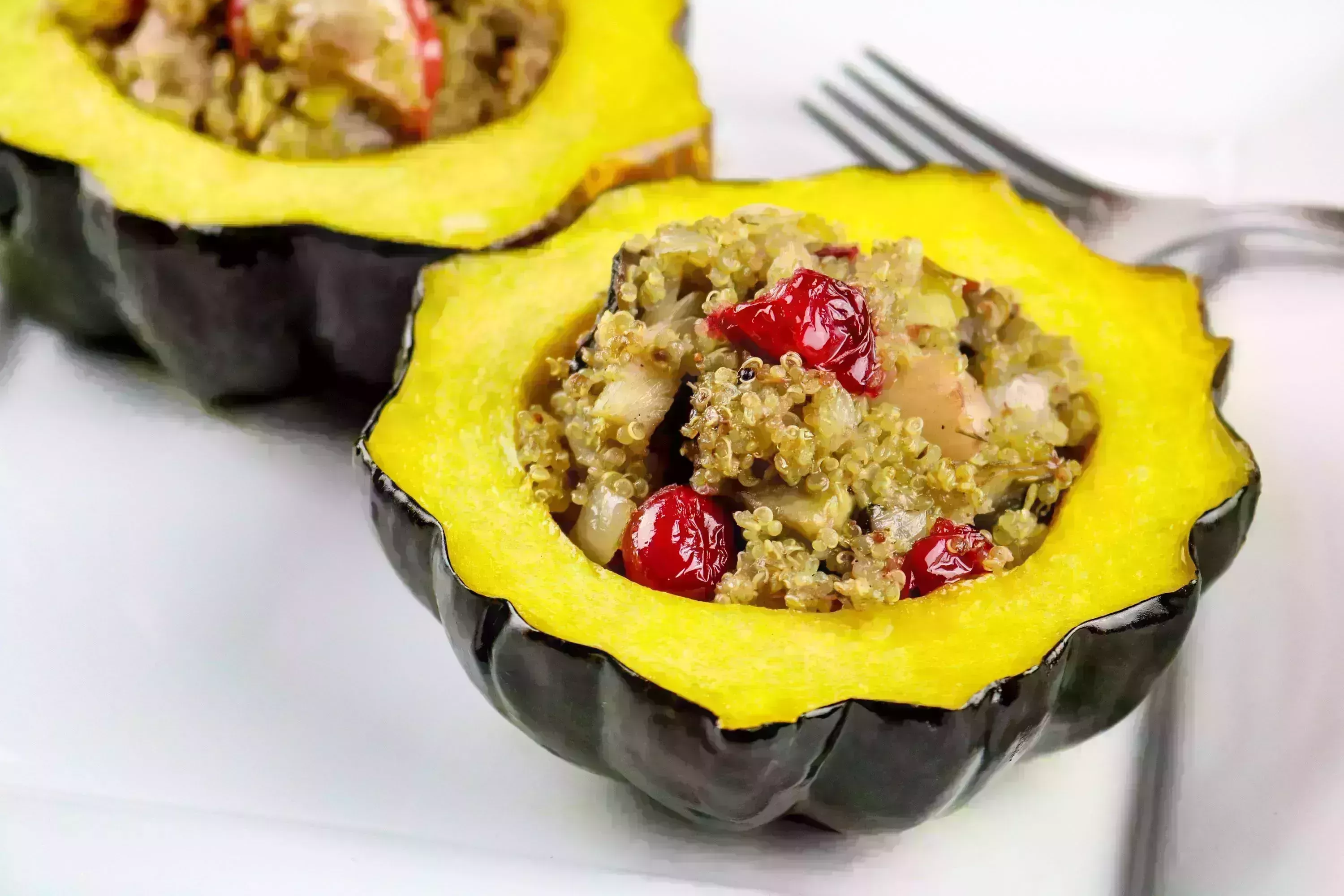 Estas mitades de calabaza rellenas son tan bonitas como satisfactorias (y nutritivas), y ese color vibrante no es una coincidencia. "El color de la calabaza de bellota es una indicación de su alto contenido en antioxidantes, incluidos los carotenoides (el tono naranja/amarillo)", dice Wolff. Los carotenoides ayudan a la salud de la piel protegiéndola de los rayos UV y del envejecimiento.