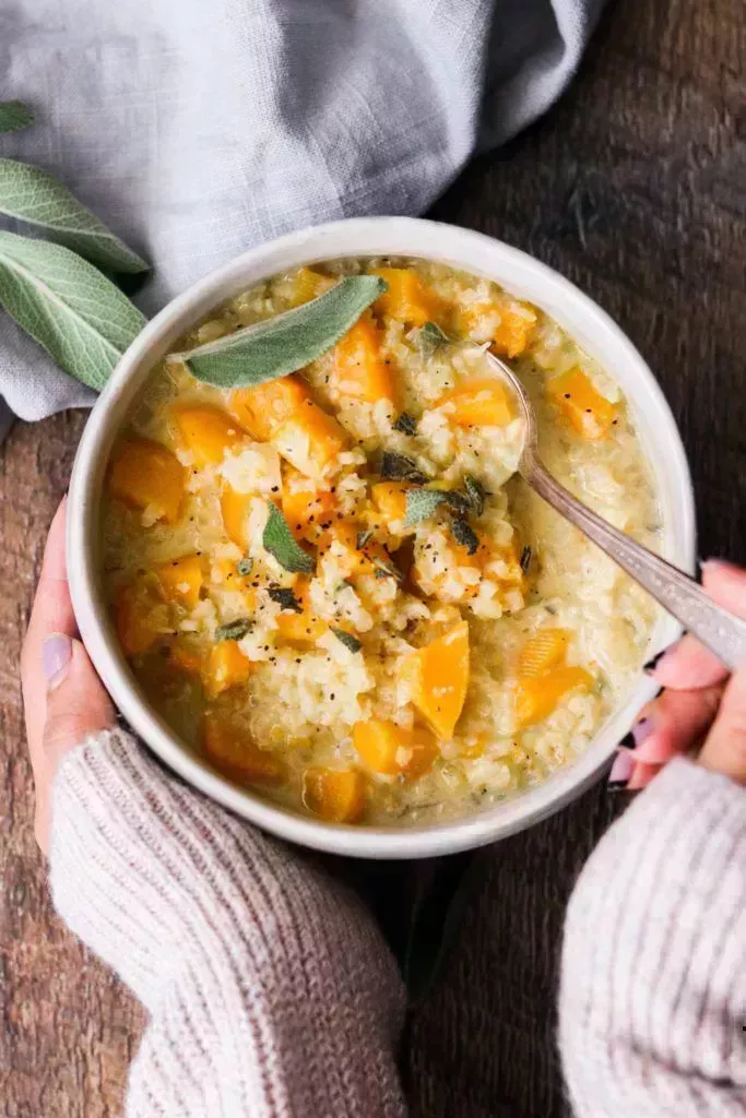 Prepara este risotto de calabaza, que lleva arroz de coliflor en lugar del normal, en la olla instantánea para un primer plato o guarnición sencilla.