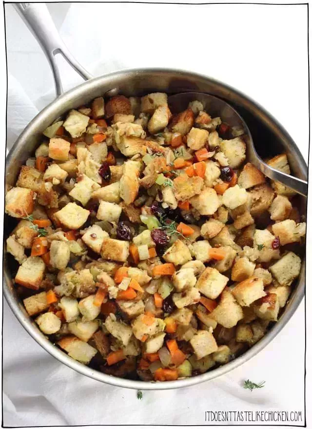 El pan tostado, un montón de verduras y los arándanos secos hacen que este relleno sea un tema de conversación.
