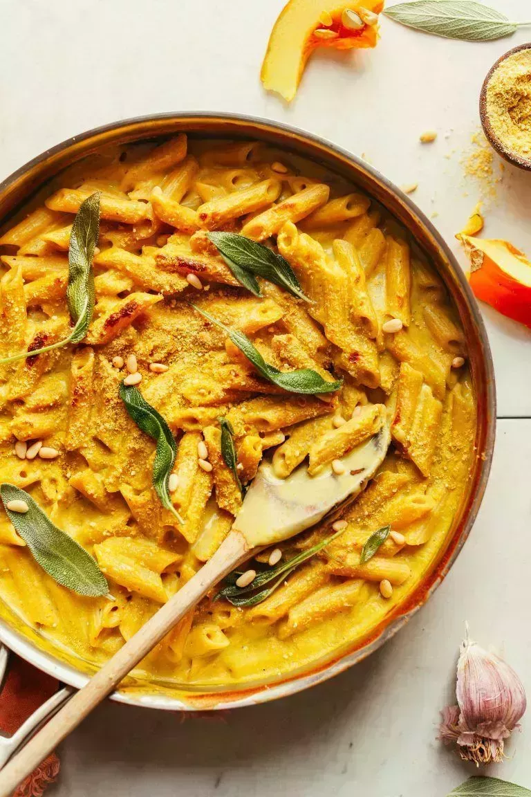 Estos macarrones sin lácteos son perfectos para el Día de Acción de Gracias gracias a su sabor a calabaza.
