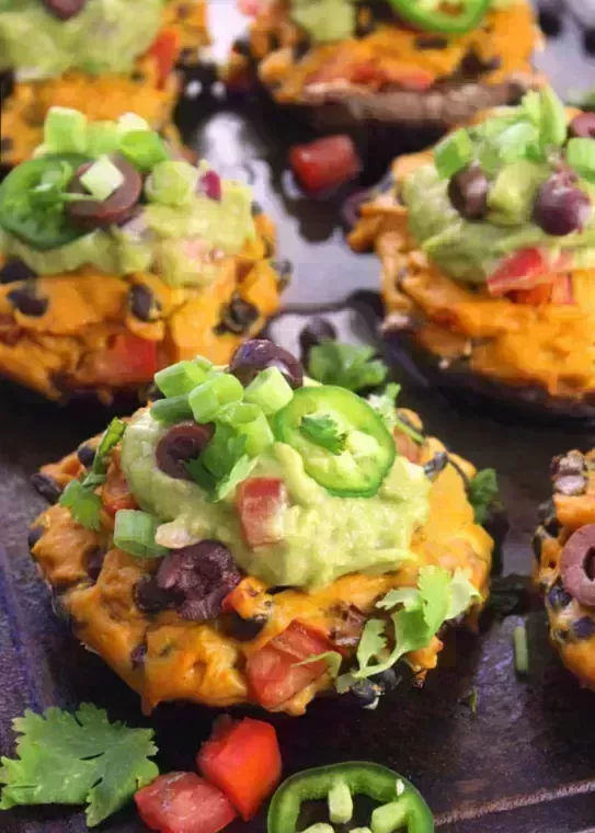 ¿Quién necesita patatas fritas cuando tiene portobellos? Los tomates secos, el guacamole y las aceitunas hacen que esta guarnición sea un plato que todos querrán probar.