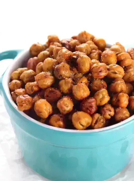 Crujientes por fuera y tiernos por dentro, estos garbanzos asados tienen un toque salado y picante que te hará volver por más.