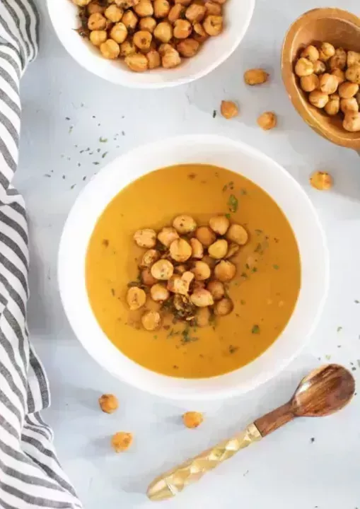 Con una base cremosa y vegana, rematada con garbanzos crujientes, esta sopa de calabacín es buena al siguiente nivel.