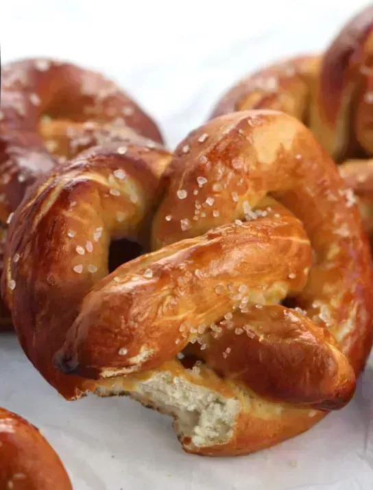 Dorados, suaves, salados y con mantequilla (bueno, más o menos). Son como los pretzels blandos que se compran en el centro comercial, pero veganos.