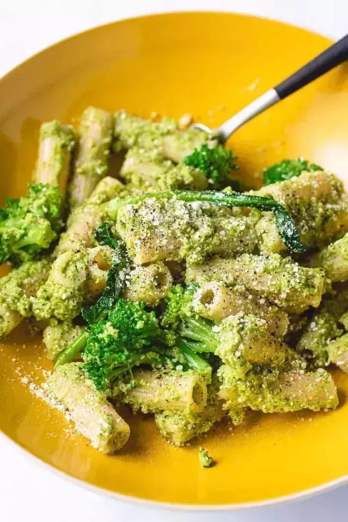 Esta ensalada de pasta vegana está cargada de fibra, proteínas y verduras, por lo que tus invitados se sentirán bien al echarla en su plato.