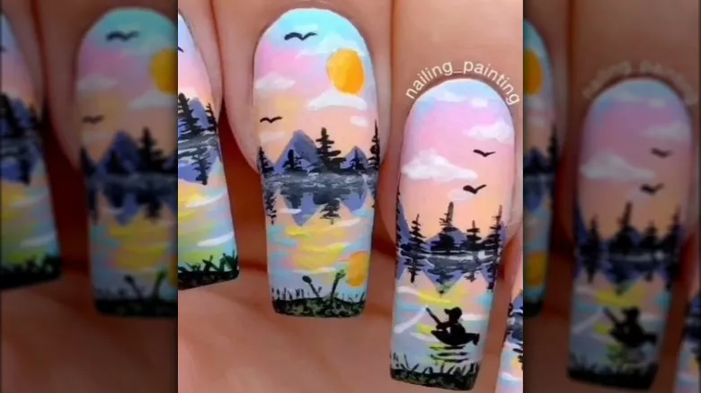 Aunque las uñas de paisaje requieren precisión extrema, nada se compara a llevar pinturas en miniatura en tus manos. Usa esponjas y pinceles para crear diseños complejos.