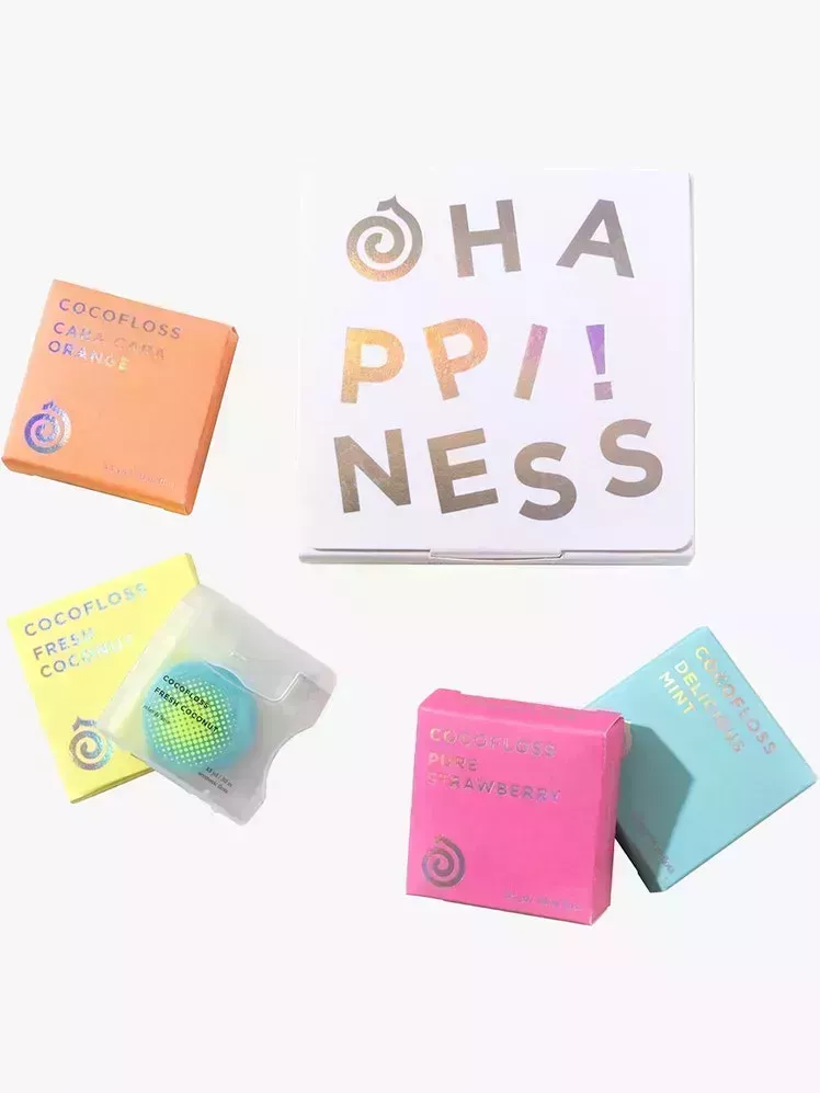 Despídete de los antiestéticos botes de enjuague bucal y quédate con las pastillas Restore Mouthwash de Boka. Cada bote contiene 90 pastillas con sabor a menta que sólo tienes que masticar, tragar y escupir; fácil, ¿verdad? Añade un poco de color a tu rutina dental con el pack de 4 hilos dentales de Cocofloss, ganador del premio Allure Best of Beauty. No sólo son bonitos, sino que vienen en sabores excitantes como fresa, menta y coco.