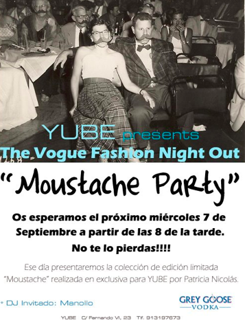 No me pienso perder por nada esta fiesta porque tiene pinta de ser el evento rey de esta Fashion Night Out, así que voy pensando que bigote me sentará mejor ¿el de Charlot? ¿quizás uno de Dalí ?¿o uno pintado a lo Groucho Marx?