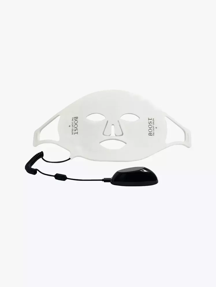 Por qué merece la pena: Desarrollada por The Light Salon, con sede en el Reino Unido, un salón que ofrece una variedad de tratamientos con LED, nanodermoabrasión y microneedling, Boost LED Mask ha encapsulado los tratamientos de nivel profesional en un dispositivo para el hogar. Los tratamientos de 10 minutos de duración utilizan longitudes de onda rojas para reducir la inflamación, mientras que los rayos infrarrojos cercanos activan la producción de colágeno y atenúan la decoloración. La máscara de silicona viene con protectores oculares opcionales y un controlador independiente.