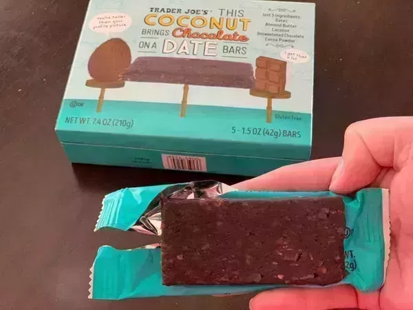 La barra de dátiles, coco y chocolate de Trader Joe's es el desayuno perfecto para llevar.